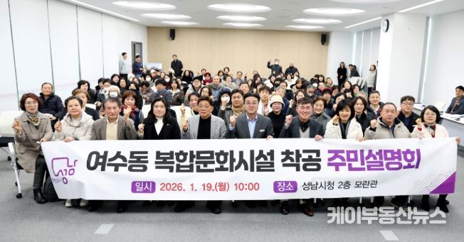 케이부동산뉴스 김교민 기자 | 성남시의회는 19일 성남시청 2층 모란관에서 열린 ‘여수동 복합문화시설 착공 주민설명회’에 참석했다. 이번 설명회는 여수동 복합문화시설 조성 사업의 본격적인 착공을 앞두고 추진 경과와 향후 계획을 주민들과 공유하기 위해 마련됐다.