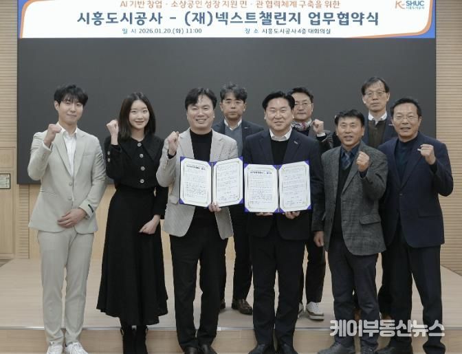 케이부동산뉴스 김교민 기자 | 시흥도시공사는 지난 20일, 재단법인 넥스트챌린지(이하 넥스트챌린지)와 AI를 기반으로 창업·소상공인 성장 지원 민·관 협력 체계 구축을 위한 업무협약을 체결했다고 밝혔다.