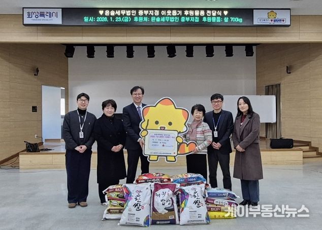 케이부동산뉴스 김교민 기자 | 윤솔세무법인 동부지점이 23일 설 명절을 앞두고 쌀 700kg을 화성특례시 팔탄면에 기부하며 지역 사회 나눔 실천에 나섰다.