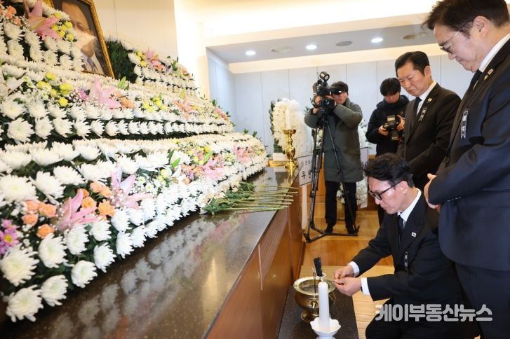 케이부동산뉴스 김교민 기자 | 김민석 국무총리가 27일 종로구 서울대학교병원 장례식장에서 故 이해찬 민주평통 수석부의장의 빈소를 조문하고 있다.
