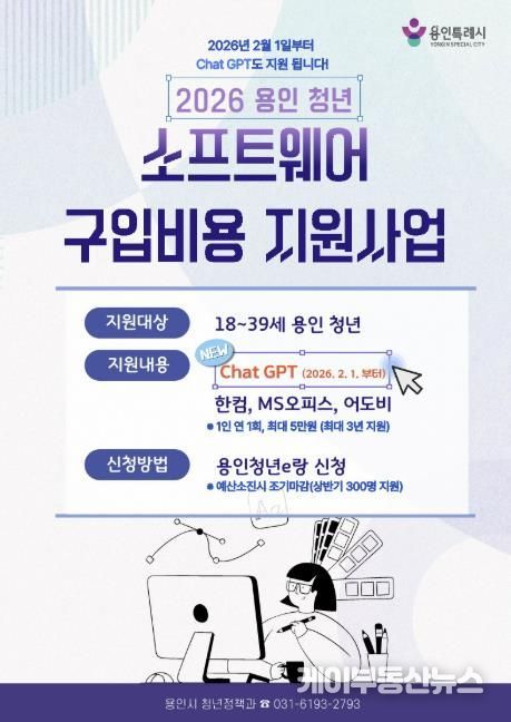 케이부동산뉴스 김교민 기자 | 용인특례시는 청년들의 디지털 역량 강화를 위해 ‘청년 소프트웨어 구입비용 지원사업’ 대상 품목에 ‘ChatGPT Plus’를 추가했다고 2일 밝혔다.