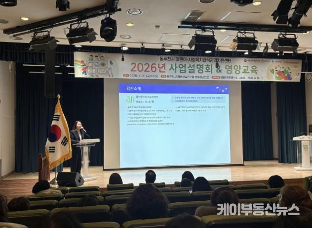 케이부동산뉴스 김교민 기자 | 동두천시는 지난 1월 30일 동두천시 평생학습관 한울림공연장에서 관내 어린이·사회복지급식소 원장과 시설장 등을 대상으로 ‘2026년 동두천시 어린이·사회복지 급식관리지원센터 사업설명회 및 집합교육’을 개최했다.