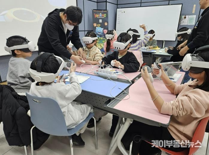 프로그램은 총 4차시로 운영됐으며 △컴퓨팅 사고력 기초 이론 학습 △가상현실 머리 착용형 디스플레이(HMD) 사용법 및 가상 행성 코딩 실습 △함수·반복문 개념 이해와 알고리즘 최적화 △인공지능·가상융합 기술을 활용한 미래 직업 탐색 등 기초 이해부터 응용·확장 단계까지 이어지는 체계적인 학습 과정으로 진행됐다.