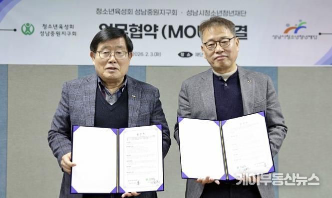 케이부동산뉴스 김교민 기자 | 성남시청소년청년재단은 2월 3일 청소년육성회 성남중원지구회와 지역 청소년의 건강한 성장과 복지 증진을 위한 업무협약을 체결했다.