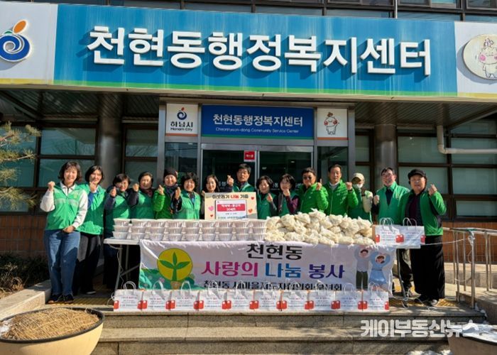케이부동산뉴스 김교민 기자 | 하남시 천현동은 지난 2월 3일 천현동 새마을협의회 및 부녀회 주관으로 관내 저소득층 50가구에‘사랑의 떡·물김치 나눔 행사를 실시했다'고 밝혔다.