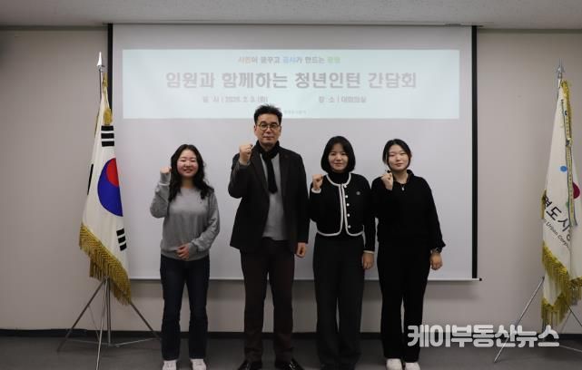 케이부동산뉴스 김교민 기자 | 광명도시공사는 2월 3일 한정광 경영관리본부장이 참여한 가운데 청년인턴들과 간담회를 열고 소통 중심의 조직문화 조성에 나섰다고 밝혔다. 이번 간담회는 청년인턴들의 근무 만족도를 높이고 현장의 다양한 의견을 경영에 반영하기 위해 추진됐다.