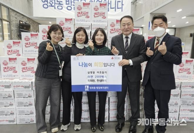 영화동 행정복지센터는 기부된 라면 200박스를 설 연휴 전까지 관내 저소득 가정, 독거노인 등 생활이 어려운 이웃에게 신속히 전달할 계획이다.