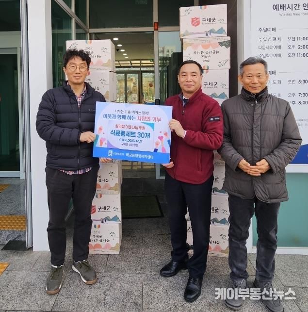 케이부동산뉴스 김교민 기자 | 지난 5일, 구세군수원영문에서 수원시 팔달구 매교동에 설 명절을 앞두고 풍성한 명절 분위기를 조성하여 기쁨을 나누고자 관내 어려운 이웃들에게 180만원 상당의 식료품 선물 세트 30박스를 후원했다.