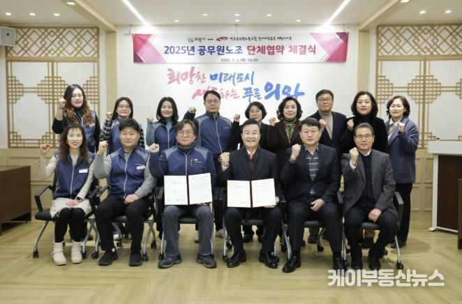 케이부동산뉴스 김교민 기자 | 의왕시가 2월 5일 시청 소회의실에서 전국공무원노동조합 경기지역본부 의왕시지부와 ‘공무원 단체협약’을 체결했다.