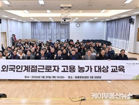 케이부동산뉴스 김교민 기자 | 양평군은 지난 1월 29일 오후 2시부터 5시까지 양동면 문화센터 3층 다목적회관에서 ‘2026년도 외국인 계절근로자 고용농가 대상 교육’을 실시했다.