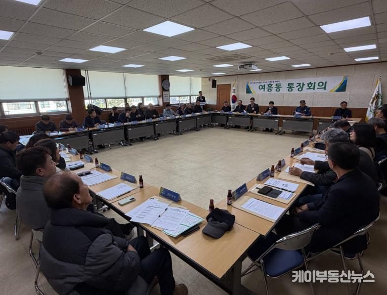 케이부동산뉴스 김교민 기자 | 여주시 여흥동은 6일 오전, 행정복지센터 2층 회의실에서 제10대 김광덕 부시장과 함께하는 2월 1차 통장회의를 개최했다. 회의에는 김광덕 부시장, 김영완 여흥동장, 정지남 홍문지구대장, 이병길 여주농협조합장 및 33개 마을 통장이 참석했다.
