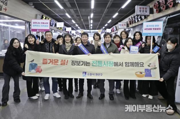 케이부동산뉴스 김교민 기자 | 수원시 권선구는 지난 9일 설 명절을 맞아 권선종합시장을 찾아 지역경제를 살리기 위한 ‘전통시장 장보기 캠페인’을 실시했다.