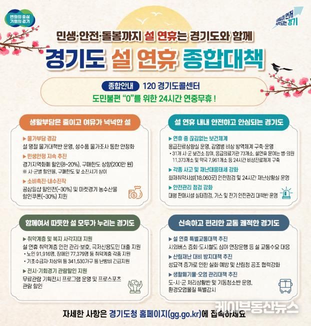 케이부동산뉴스 김교민 기자 | 경기도가 도민들이 따뜻하고 편안한 명절을 보낼 수 있도록 ‘설 연휴 종합대책’을 추진한다.