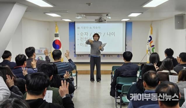 케이부동산뉴스 김교민 기자 | 안양도시공사는 지난 10일 공사 대회의실에서 장애인 고객과의 원활한 소통과 포용적 공공서비스 강화를 위한 임직원 대상 ‘기초 수어 교육’을 실시했다고 11일 밝혔다.