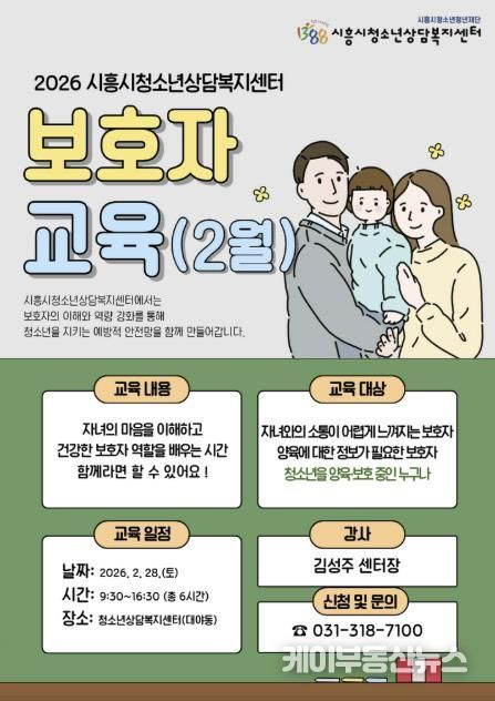 케이부동산뉴스 김교민 기자 | 시흥시청소년청년재단 산하기관인 시흥시청소년상담복지센터가 보호자의 이해와 역할 강화를 통해 청소년을 지키는 예방적 안전망을 구축하고자 2026년부터 보호자 교육을 정기적으로 운영하고 있다.
