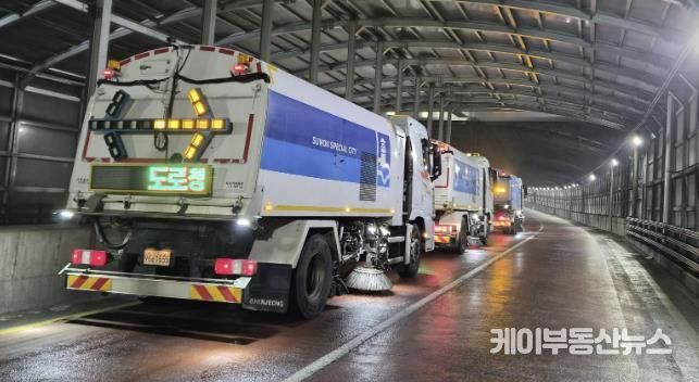 케이부동산뉴스 김교민 기자 | 수원시 영통구는 지난 11일 설 명절을 맞아 귀성객들에게 쾌적하고 안전한 도로 환경을 제공하기 위해 주요 도로 구간에 대한 노면 청소차량 합동 작업을 실시했다.