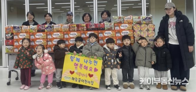 케이부동산뉴스 김교민 기자 | 하늘꿈어린이집은 지난 11일, 지역 내 어려운 이웃을 돕기 위해 라면 30박스를 매산동 행정복지센터에 기부했다.
