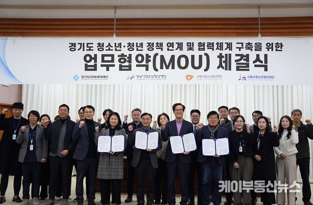 케이부동산뉴스 김교민 기자 | 수원시청소년청년재단은 2월 12일, 경기도미래세대재단, 성남시청소년청년재단, 시흥시청소년청년재단과 함께 ‘경기도 청년 정책 연계 및 협력체계 구축을 위한 업무협약’을 체결했다.