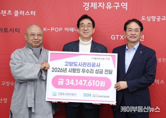 케이부동산뉴스 김교민 기자 | 고양특례시는 지난 11일, 고양도시관리공사로부터 고양시의 어려운 이웃을 위한 성금 34,147,610원을 전달받았다고 밝혔다.