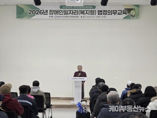 케이부동산뉴스 김교민 기자 | 동두천시장애인단체총연합회는 장애인일자리(복지일자리) 참여자의 근로 권익 보호와 안전한 근무환경 조성을 위해 2026년 법정 의무교육을 실시했다. 이번 교육에는 참여자 103명이 참석했다.