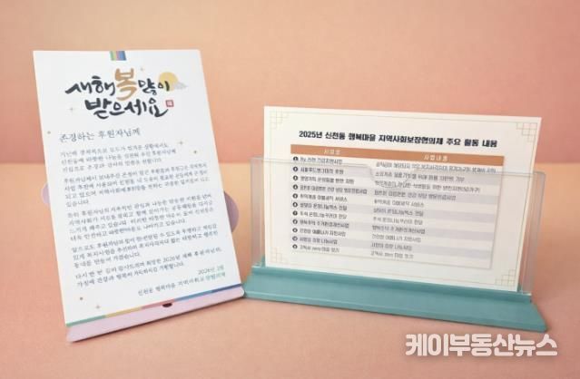 신화철 신천동장은 “후원자 여러분의 변함없는 관심과 사랑 덕분에 신천동이 더욱 따뜻한 공동체로 자리매김하고 있다”라며 “이번 감사 서한 발송이 작은 위로와 격려가 되기를 바란다. 행정복지센터도 민관 협력을 통해 취약계층 지원과 지역 복지 네트워크 활성화에 최선을 다하겠다”라고 말했다.