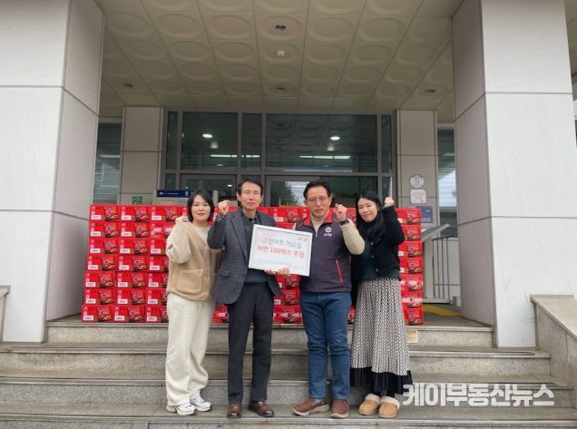 케이부동산뉴스 김교민 기자 | 시흥시 군자동에 있는 그린마트가 지난 2월 13일 지역 내 어려운 이웃들을 위해 라면 100상자를 군자동 행정복지센터에 전달하며 따뜻한 나눔을 실천했다.