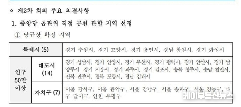 케이부동산뉴스 김교민 기자 | 국민의힘 제9회 전국동시지방선거 공천관리위원회(위원장 이정현)는 23일 2차 회의 결과를 발표하고, 2026년 제9회 전국동시지방선거와 관련해 중앙당이 직접 공천을 관할할 지역을 확정했다.