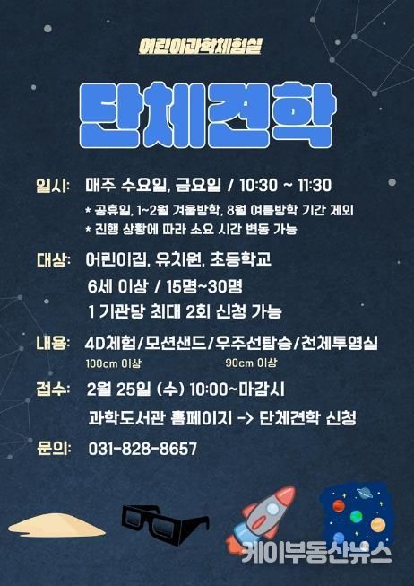 케이부동산뉴스 김교민 기자 | 의정부과학도서관은 어린이집, 유치원 및 초등학교를 대상으로 3월부터 어린이과학체험실 단체 견학 프로그램을 운영한다.