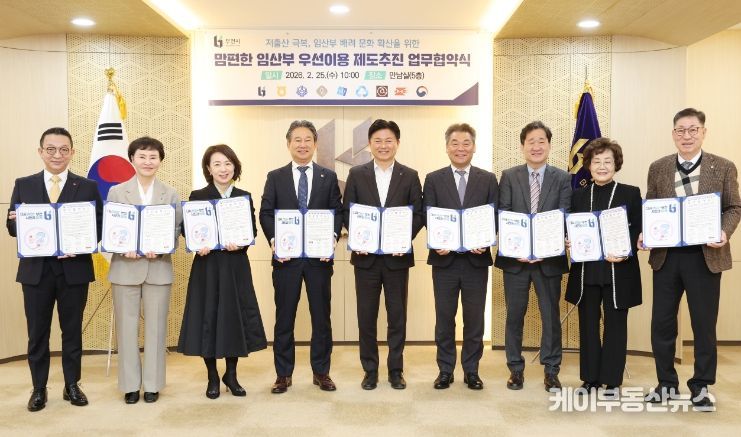 케이부동산뉴스 김교민 기자 | 부천시는 지난 25일 시청 만남실에서 ‘맘편한 임산부 우선이용 제도’ 업무협약식을 열고, 저출산 대응과 임산부 안전 및 편의 증진을 위한 협력체계를 구축했다. 이번 협약은 시민 일상 속에서 임산부가 우선 이용할 수 있는 환경을 확산하기 위해 마련됐다.