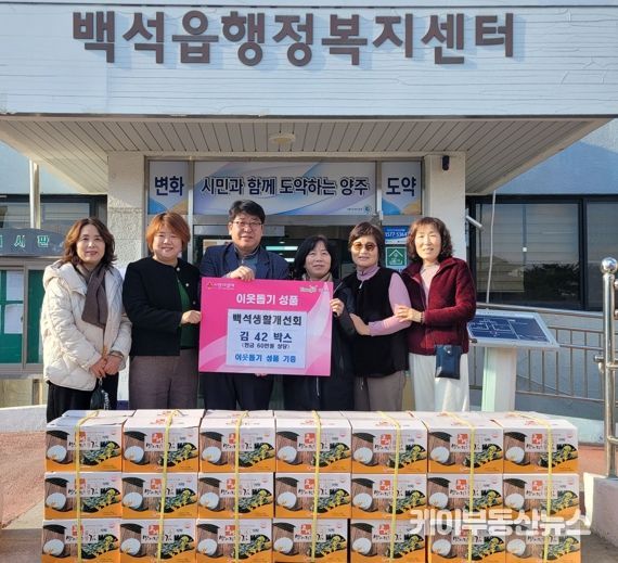 케이부동산뉴스 김교민 기자 | 백석생활개선회가 지난 27일 백석읍 행정복지센터를 방문해 관내 취약계층을 위한 김 40박스를 기탁했다.