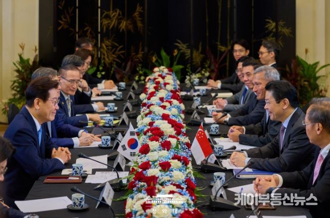 케이부동산뉴스 김교민 기자 | 싱가포르를 국빈 방문 중인 이재명 대통령은 3월 2일 오전 '로렌스 웡(Lawrence Wong)' 싱가포르 총리와 정상회담을 갖고 양국 간 전략적 동반자 관계 심화 방안과 한반도 및 중동정세 등 주요 국제 현안에 대해 폭넓게 논의했다.