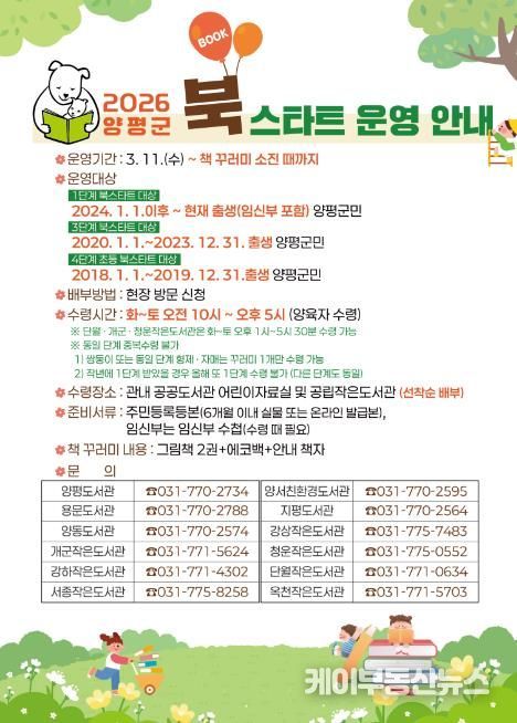 케이부동산뉴스 김교민 기자 | 양평군은 오는 11일부터 ‘2026년 북스타트 사업’을 본격 운영한다고 밝혔다.