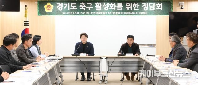 케이부동산뉴스 김교민 기자 | 경기도의회 문화체육관광위원회 황대호 위원장(더불어민주당, 수원3)이 6일 경기도축구협회 이석재 회장을 비롯한 협회 관계자들 및 도내 소재 초중고 및 클럽 학생 축구팀 감독들과 경기도 학생 축구선수 지원 정담회를 가졌다. 정담회는 경기도축구협회 측에서 경기도 축구 활성화와 학생 축구선수 지원 활성화를 위한 정책 제안을 청취하고 실질적 지원 방안을 마련하기 위해 진행됐다.