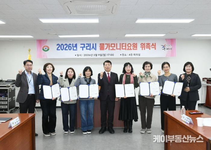 케이부동산뉴스 김교민 기자 | 구리시는 지난 9일 시청 4층 회의실에서 지역 물가 안정과 공정한 소비 환경 조성을 이끌어갈 ‘2026년 신규 물가 모니터 요원 위촉식’을 개최했다.