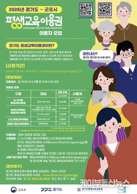 케이부동산뉴스 김교민 기자 | 군포시가 시민들의 자기계발 기회를 확대하고 학습 격차를 해소하기 위해 ‘2026년 제1차 평생교육이용권 지원사업’ 대상자를 모집한다고 밝혔다.