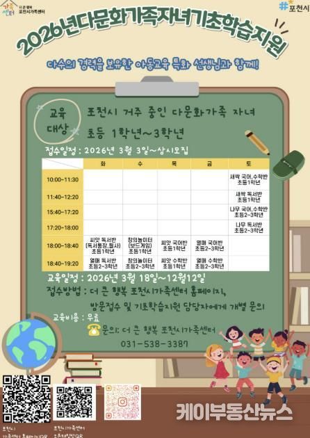 케이부동산뉴스 김교민 기자 | 포천시 더 큰 행복 포천시가족센터는 다문화가족 자녀의 안정적인 학교생활 적응과 학습 격차 해소를 위해 ‘다문화가족 자녀 기초학습지원 사업’을 18일부터 본격 운영한다.