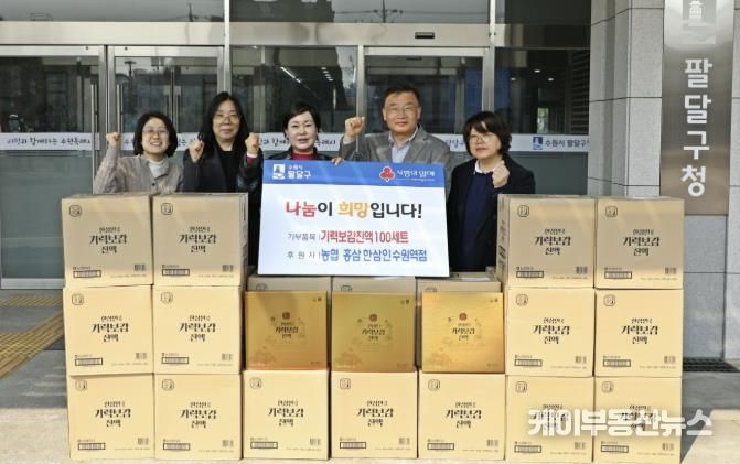 케이부동산뉴스 김교민 기자 | 수원시 팔달구는 지난 17일, 농협 홍삼 한삼인 수원역점으로부터 기부받은 기력보감 진액 100세트를 관내 취약계층에 전달하며 건강한 나눔 문화를 실천했다.