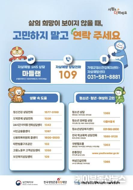 케이부동산뉴스 김교민 기자 | 가평군정신건강복지센터와 자살예방센터가 봄철 자살 위험 증가에 대응해 집중 예방 활동에 나섰다.