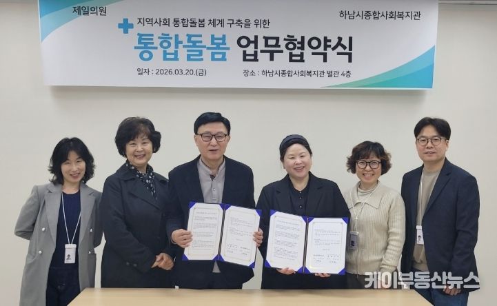 케이부동산뉴스 김교민 기자 | 하남시종합사회복지관과 하남시 재택의료센터로 지정된 제일의원은 지난 20일, 하남시 관내 돌봄 취약계층의 건강권 보장과 지역사회통합돌봄 체계 구축을 위한 업무협약을 체결했다고 밝혔다.