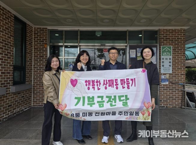 케이부동산뉴스 김교민 기자 | 동두천시 상패동 8통 미동전원마을 주민들이 지난 3월 23일 상패동 행정복지센터에 어려운 이웃을 돕기 위한 성금 100만 원을 전달했다.