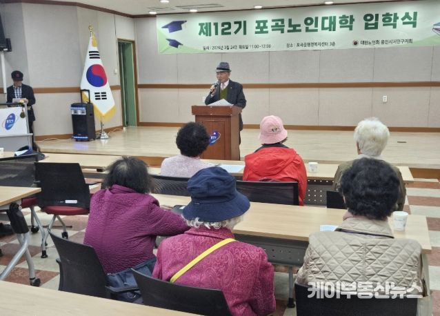 케이부동산뉴스 김교민 기자 | 용인특례시는 24일 처인구 포곡읍행정복지센터 대회의실에서 ‘포곡노인대학 제12기 입학식’이 열렸다고 25일 밝혔다.