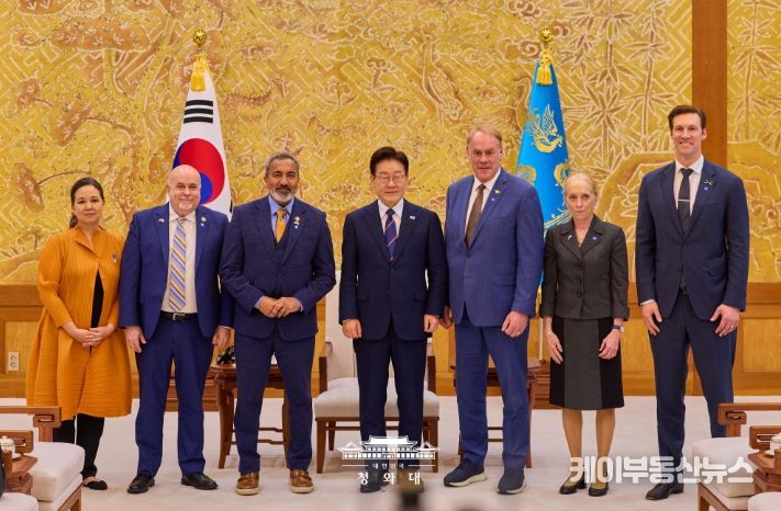 케이부동산뉴스 김교민 기자 | 이재명 대통령은 3월 31일 오후 청와대에서 아미 베라(Ami Bera) 하원 동아태소위원회 간사 등 공화·민주 양당 의원으로 구성된 미국 의회 코리아스터디그룹 대표단을 접견하고 최근 중동 전쟁, 한미관계, 한반도 문제 등에 대해 의견을 나눴다.