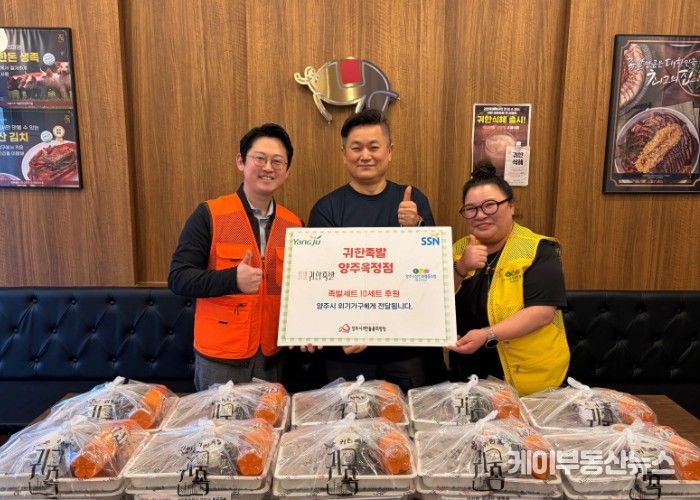 케이부동산뉴스 김교민 기자 | 지난 9일, 양주시무한돌봄희망팀은 양주시상인회협동조합의 연계로‘귀한족발 옥정점’을 통해 족발 10세트를 취약계층 및 위기가구에게 전달했다.