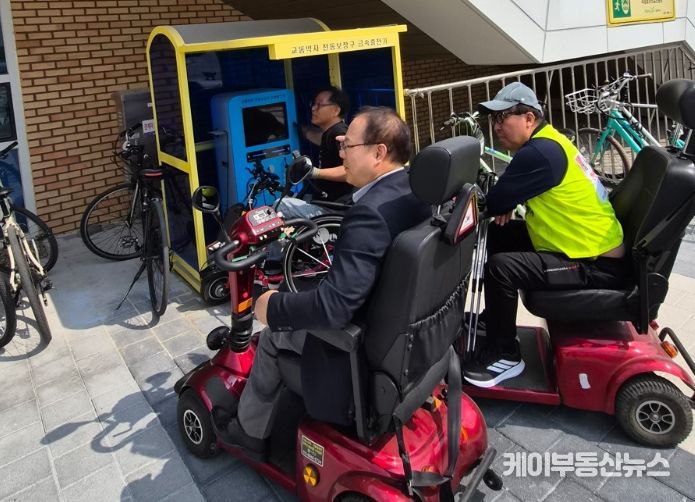 케이부동산뉴스 김교민 기자 | 경기도의회 보건복지위원회 박재용 의원(더불어민주당, 비례)은 지난 17일 양주시 옥정호수공원에서 교통약자를 위한 전동스쿠터 급속충전기 운영 실태를 점검하고, 이용 편의 개선 필요성을 확인했다.