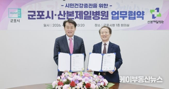 케이부동산뉴스 김교민 기자 | 군포시는 4월 20일 시청 1층 회의실에서 산본제일병원과 ‘시민 건강증진 및 의료서비스 질 향상을 위한 업무협약(MOU)’을 체결했다.