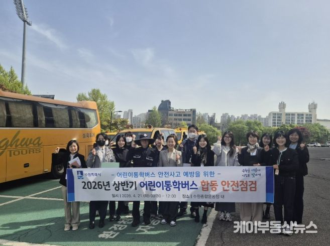케이부동산뉴스 김교민 기자 | 수원특례시는 21일 수원종합운동장 주차구역에서 수원 장안·권선·팔달·영통경찰서, 한국교통안전공단과 함께 ‘2026년 상반기 어린이통학버스 합동 안전점검’을 했다.