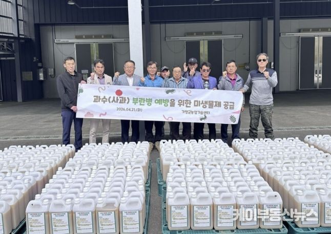 케이부동산뉴스 김교민 기자 | 가평군농업기술센터가 사과 재배 농가의 고질적인 질병인 부란병 예방을 위해 친환경 미생물제 보급에 나섰다.