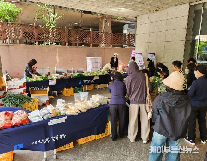 케이부동산뉴스 김교민 기자 | 수원로컬푸드가 23일 한국마사회 수원지부에서 ‘시민에게 찾아가는 직거래 장터’를 운영했다.