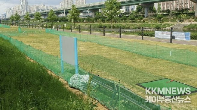 또한 안양천의 자연경관과 조화를 이루는 친환경 공간으로 조성했으며, 천연 잔디 코스와 함께 이동식 화장실, 쉼터 등 이용 편의시설도 갖췄다.