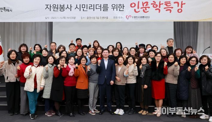 케이부동산뉴스 김교민 기자 | 이상일 용인특례시장이 16일 시청 컨벤션홀에서 자원봉사센터 봉사자 등 120여명을 대상으로 ‘자원봉사 시민리더를 위한 인문학 특강’을 약 1시간 30여분 동안 진행했다.